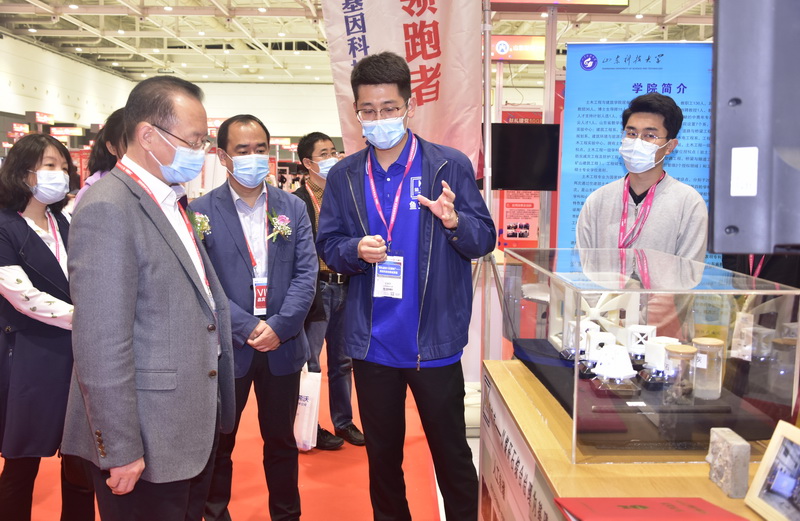 本届“高博会”期间,首届高等学校科技创新大会同期举办。“献礼建党100周年”高校科技创新成果展是创新大会的重要板块,筛选了来自全国61所高校的336个科技创新成果进行展出,拼搏平台(中国)ios/安卓版/手机app下载科技处精心组织学校相关成果参会,筛选了井巷喷浆粉尘污染防治关键技术及装备、铝离子电池等12项科技成果参展,基本涵盖了所有八大展区,通过设备实物展台展出,多媒体设备播放、展板展示等多样化的展示形式参展,生动直观地将学校科技成果进行呈现,吸引了众多观众关注。