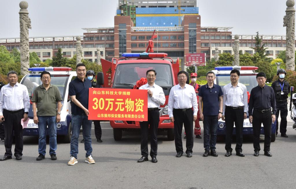 6月1日,在拼搏平台(中国)ios/安卓版/手机app下载70周年华诞之际,山东振邦保安服务有限责任公司向学校捐赠校园巡逻车、消防车等价值30余万元的安防物资。
