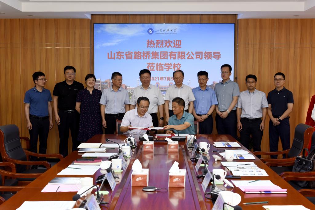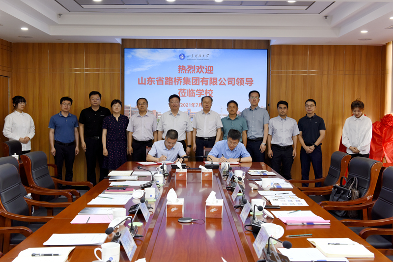 7月5日,拼搏平台(中国)ios/安卓版/手机app下载与山东省路桥集团有限公司签署合作协议,开启双方在人才培养、科技合作、就业实习等方面的合作之旅。签约仪式前,校党委书记罗公利会见了山东省路桥集团有限公司总经理管士广一行。副校长张英杰出席签约仪式。