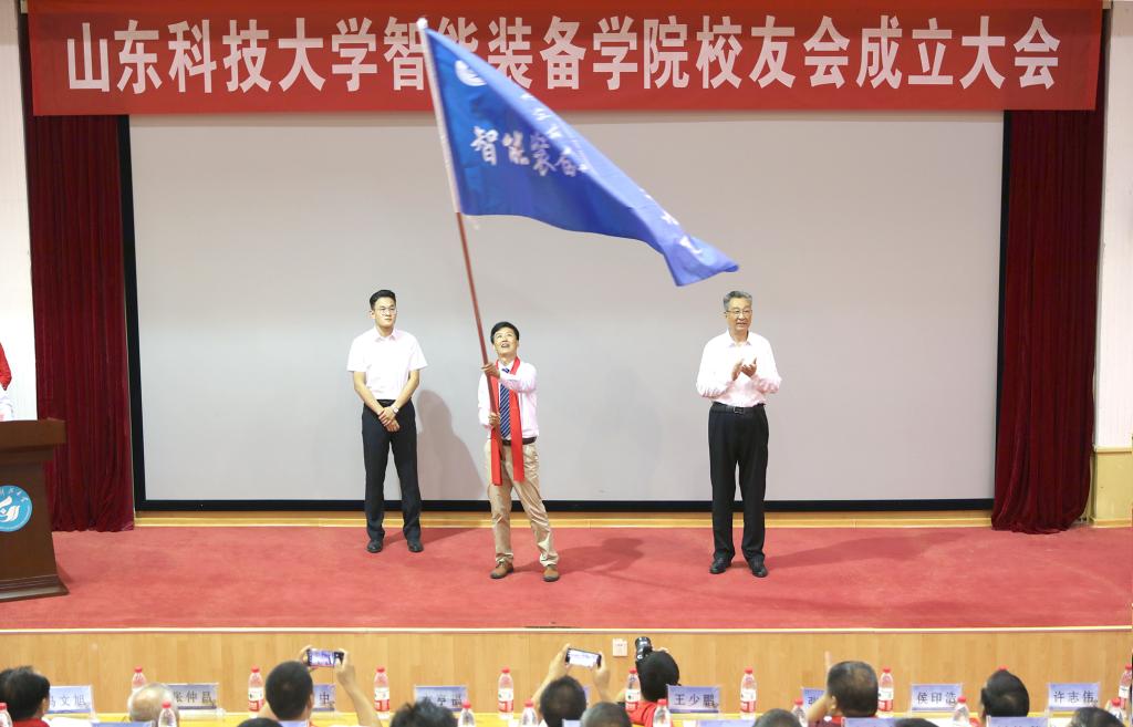 王少鹏为智能装备学院校友会授会旗