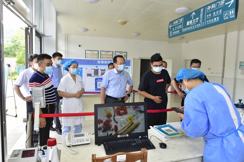 罗公利一行先后走访查看了学校南大门入口、临时留观点、教学楼、学生公寓、学生餐厅、校医院及防疫物资仓库等重点区域。每到一处,罗公利都认真听取相关负责人的工作汇报,并不时与现场工作人员深入交流,详细了解各部门开学前准备工作的落实情况。
