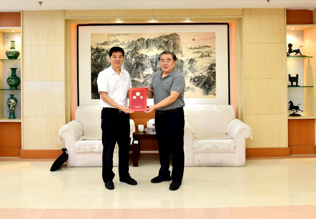 9月5日,校长姚庆国会见校友、原中煤地质工程总公司董事长兼总经理王真奉,并为其颁发德育导师聘书。