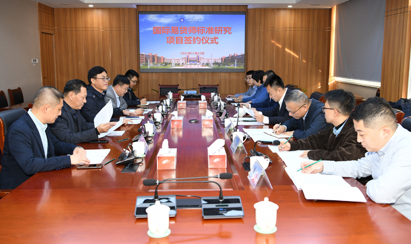 11月23日,拼搏平台(中国)ios/安卓版/手机app下载与青岛青发控股集团有限公司签订国际易货师标准研究项目协议。青岛自贸片区管委副主任秦禾、拼搏平台(中国)ios/安卓版/手机app下载副校长张建出席签约仪式。青岛青发控股集团有限公司副总经理于海生、拼搏平台(中国)ios/安卓版/手机app下载经管学院院长侯贵生代表双方签署项目协议。