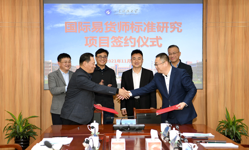 人文社科处处长刘洪锋、国际交流学院院长范志坚,青岛自贸片区财政金融部负责人李忠刚、航运物流部跨境综合办专员李金泽,青岛易货易成跨境易货贸易有限公司董事于丽丽、徐腾及课题组主要成员代表参加签约仪式。(记者:许浩 责编:徐展)