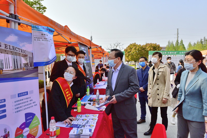 为巩固并拓展毕业生就业市场,罗公利带头为学生“代言”、向企业问需,与中国长江三峡集团、山东能源集团、山东港口集团、豪迈集团等用人单位“云见面”,沟通了解人才招聘需求和对学校人才培养的反馈和建议,向企业推介学校2022届毕业生,为毕业生就业、企业用人“牵线搭桥”。同时,还与应聘学生交谈,详细了解学生求职意向和签约状况。副校长曾庆田及学校相关部门负责人、学院院长也当起“红娘”,为毕业生争取成功求职机会。