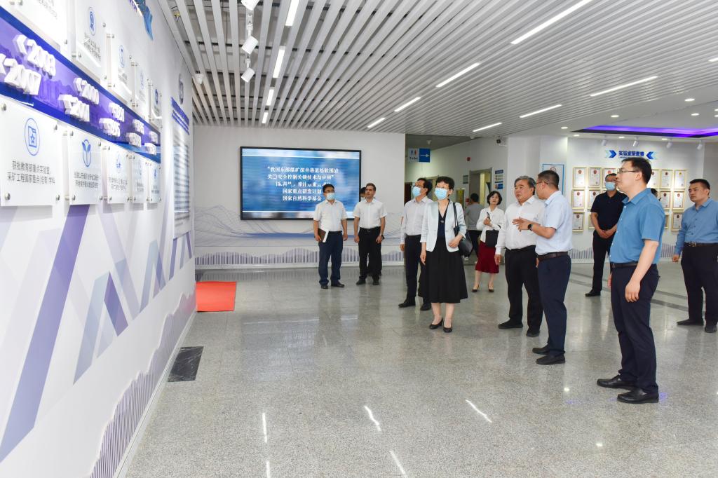 调研期间,孙晓筠一行实地考察了“矿山空区灾害与塌陷地治理”学科创新引智基地,听取了基地执行负责人陈绍杰教授关于基地建设运行的情况汇报,重点就海外引智和国际科研合作等方面的工作进行了指导,并与基地骨干成员、“山东省人民友好使者”称号获得者Naser Golsanami进行交流。