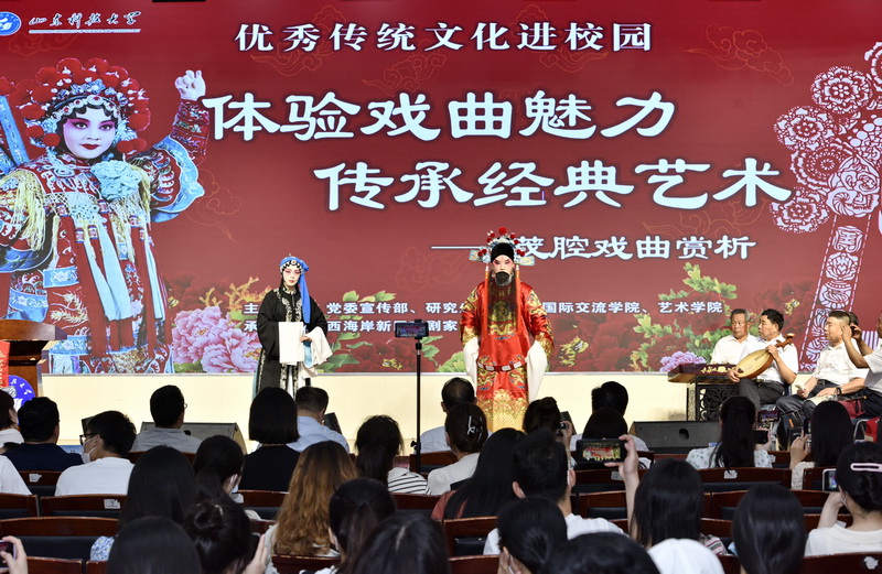 当天,黄岛区海韵茂腔艺术团展演了茂腔戏曲选段,用感人至深的情节创意,惟妙惟肖的艺术表演,为师生带来一场视听盛宴。