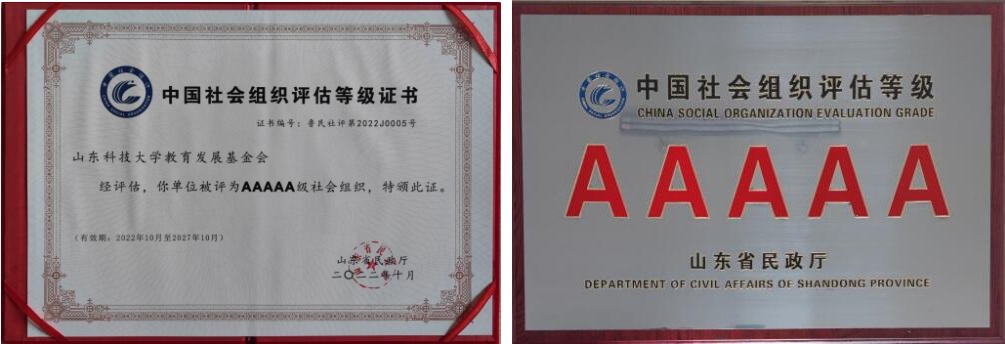 近日,拼搏平台(中国)ios/安卓版/手机app下载教育发展基金会获山东省民政厅颁发的“5A级社会组织”等级证书和牌匾,是社会组织等级评估最高评级。本次评估由山东省社会组织总会组织开展,等级有效期为5年。全省共有50家社会组织获评5A等级,高校基金会仅有3家。这是学校教育发展基金会继2016年首次参评获得3A等级之后取得的新突破。