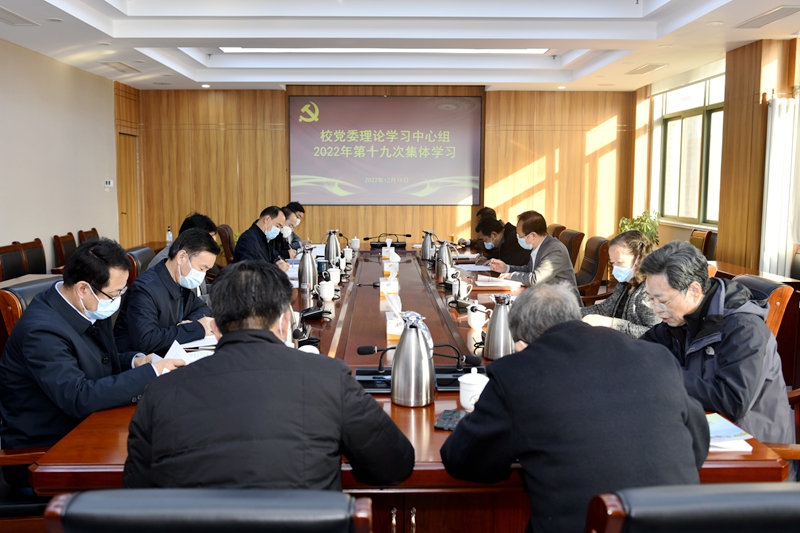 12月15日,校党委理论学习中心组开展2022年第十九次集体学习,校党委书记罗公利主持学习并讲话,就系统做好2022年中心组学习工作总结、谋划好2023年中心组学习计划、进一步提高中心组学习质量提出要求。校党委理论学习中心组成员参加学习。