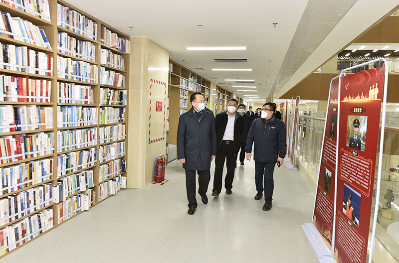 罗公利、尹华在图书馆检查工作(韩洪烁摄)
