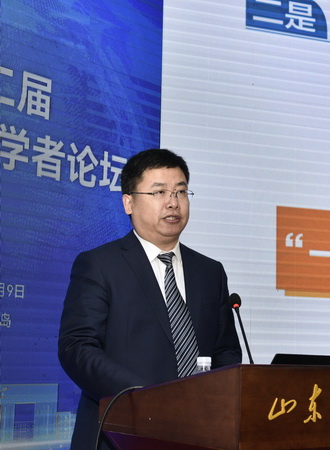 校长曾庆田出席论坛并致辞,青岛西海岸新区工委组织部副部长宗武邦宣讲青岛市及西海岸新区人才政策,人事处(人才工作办公室)处长(主任)诸葛福民主持论坛并介绍学校人才引育政策。