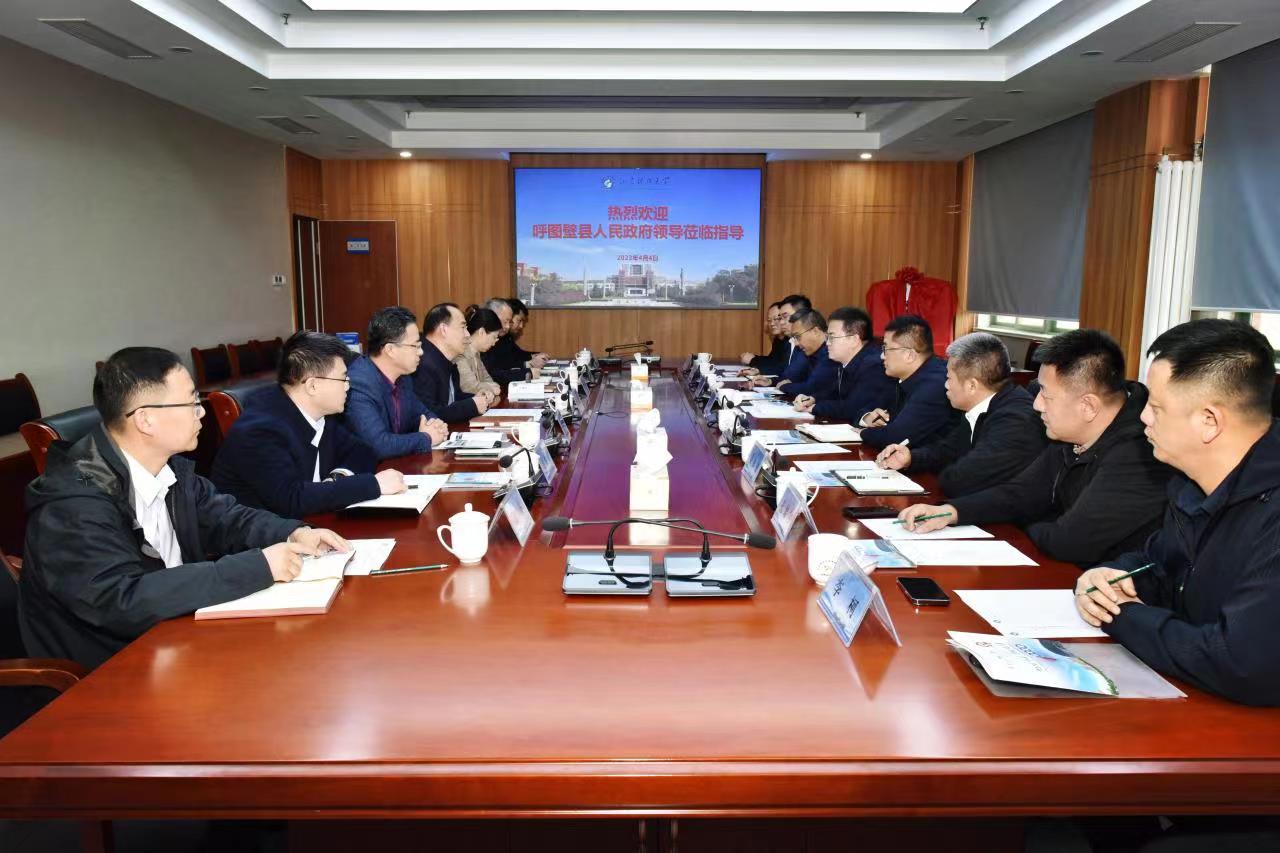 4月4日,呼图壁县委常委、常务副县长赵江涛,副县长孙路路(挂职)一行8人来校交流座谈。校长曾庆田会见了客人并座谈。