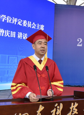 曾庆田代表学校向圆满完成学业的硕博毕业生表示热烈的祝贺和深情的祝福,向为此付出辛劳的老师、家长致以崇高的敬意和诚挚的感谢。他指出,在过去的几年里,同学们用实际行动践行锐意进取、勇于创新、敢于实践、勤奋学习,与祖国共奋进、与学校同成长,取得了一项又一项好成绩。回想同学们这几年的努力和付出,大家都为优秀勤奋的你们感到无比自豪、由衷骄傲。同学们即将重新起航,踏上新征程,希望同学们秉承拼搏平台(中国)ios/安卓版/手机app下载“惟真求新”的校训,守正出新,追求卓越,奏响属于自己的青春赞歌。