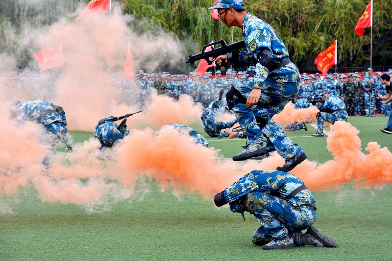 仪式上,作训教官代表栾宗晓、学生代表徐熙分别发言。据悉,本次军训为期两周。军训期间,各营开展了共同条令教育、分队队列动作、紧急集合、行军拉练、拉歌比赛轻武器射击、战场救护和内务卫生、早操等必选课目训练。同时各营根据实际情况选择性开展了模拟射击、战术格斗基础、匕首操、军体拳、识图用图、心理行为训练等。新生军训期间还组织开展了理想信念、专业认知、班风学风、心理健康、生涯规划、校规校纪、校史校情、安全文明等各项入学教育活动,教育引导新生尽快熟悉适应大学生活。