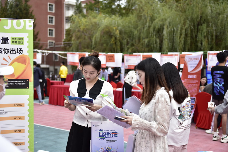 双选会现场设置了6个行业分区、6个地市组团分区,助力毕业生精准应聘。800余家用人单位按类排列,既有中国建筑集团、山东能源集团、中国移动通信集团等行业领军企业,又有歌尔股份有限公司、特来电新能源有限公司等“独角兽”企业,又有各地名企组团揽才。数列企业招聘展位一字排开,毕业生成群结队手持简历穿梭其间……