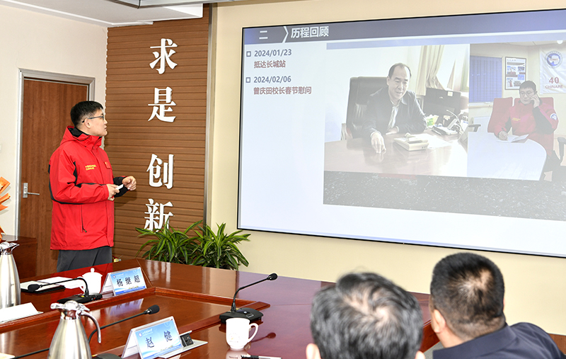 杨继超汇报了自己参与南极科考情况。作为中国第40次南极科学考察的长城站度夏队员,杨继超承担的主要任务是在长城站所处的菲尔德斯半岛南部和马克斯维尔湾开展相关测绘工作,为期51天的科考过程中,杨继超利用我校自主研发“嵙海六号”智能无人艇及相关科研设施圆满完成各项测绘任务,高质量的工作成果得到了科考队的一致认可。