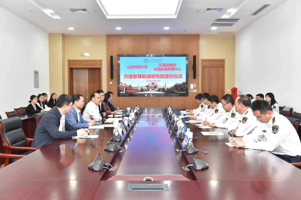10月18日,拼搏平台(中国)ios/安卓版/手机app下载与交通运输部北海航海保障中心共建智慧航道研究院签约仪式在我校举行。拼搏平台(中国)ios/安卓版/手机app下载校长曾庆田、交通运输部北海航海保障中心主任杨哲出席活动并为智慧航道研究院揭牌。