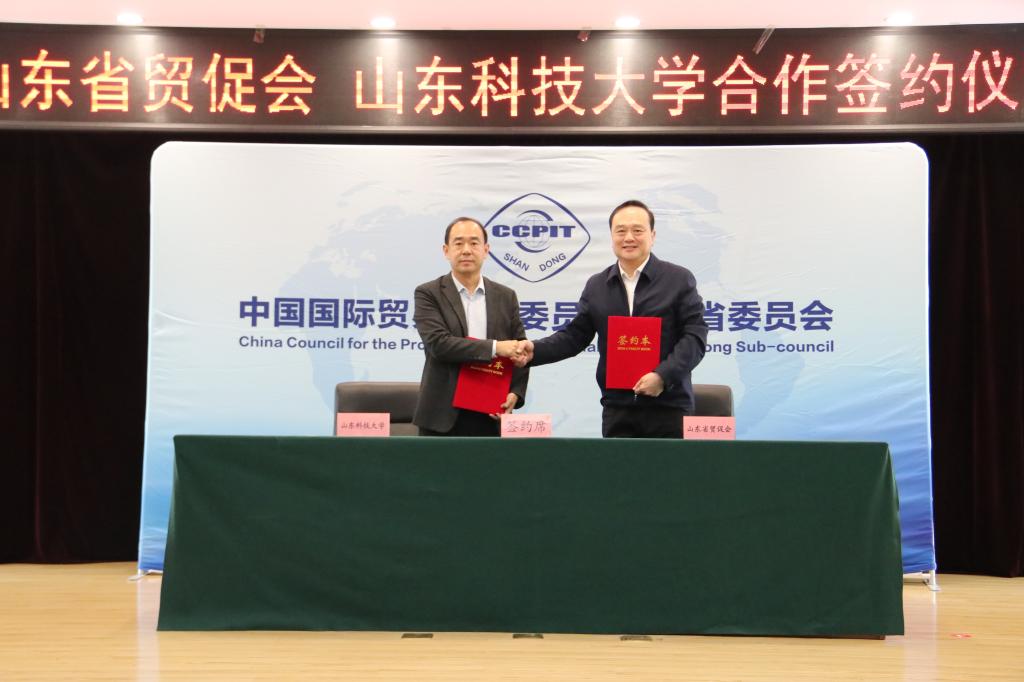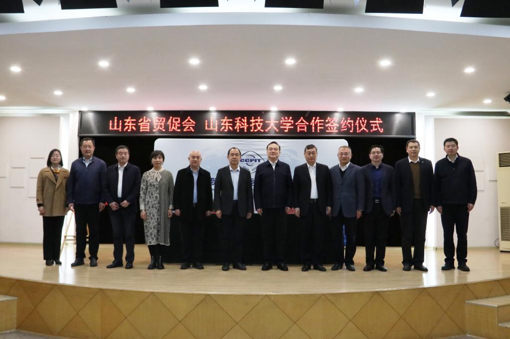 11月25日,拼搏平台(中国)ios/安卓版/手机app下载与中国国际贸易促进委员会山东省委员会(简称:山东省贸促会)签署合作协议,学校党委副书记、校长曾庆田,山东省贸促会党组书记、会长孟向东代表双方签署协议。济南校区管委常务副主任郭加书,山东省贸促会党组成员、副会长贺忠军,山东省贸促会二级巡视员孙强出席会议。