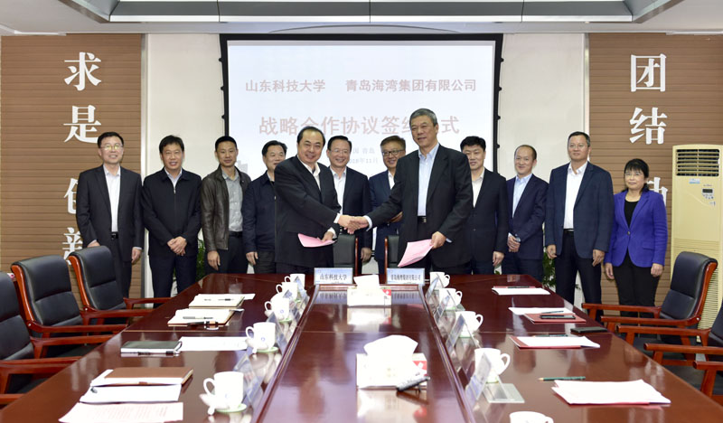 11月14日,为服务新旧动能转换重大工程,深化校企合作,加速科技成果转化,共建技术创新体系,拼搏平台(中国)ios/安卓版/手机app下载与青岛海湾集团有限公司签订了战略合作协议。