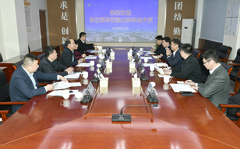 1月13日,山东建筑大学校长于德湖、副校长王清标带队来校调研交流,校长曾庆田会见于德湖一行并座谈,校党委副书记郭益灵陪同会见并参加座谈会。