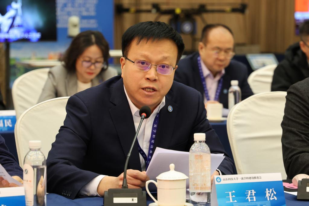王君松介绍了学校近年来在人才培养、学科建设、人才队伍、科技创新等方面取得的显著成绩。他表示,学校锚定目标、全力冲刺,高标准、高质量推进“双一流”建设,在主要任务指标上取得新进展新成效。下一步,将认真落实会议精神,坚决扛牢“走在前、挑大梁”的使命担当,全力以赴实现一流学科建设突破,为谱写中国式现代化山东篇章作出山科贡献。