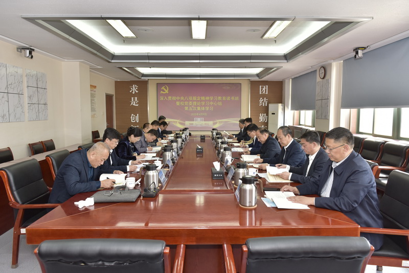 4月10日,校党委理论学习中心组开展深入贯彻中央八项规定精神学习教育读书班集体研讨暨2025年第五次集体学习。校党委书记王君松主持学习并讲话,校党委副书记、校长曾庆田及校党委理论学习中心组成员参加学习。