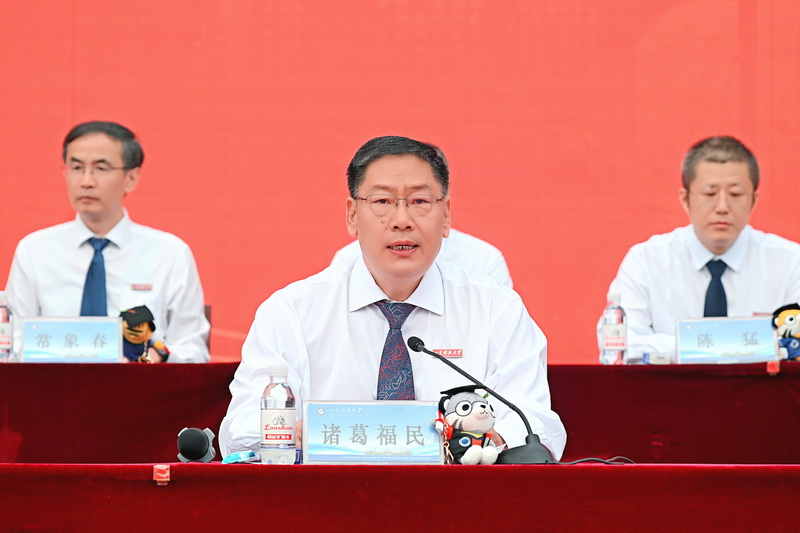 校党委领导班子成员王君松、曾庆田、郭益灵、刘明永、徐龙飞、徐方全、阳凡林、薛庆忠、诸葛福民、李克周、王震,学校相关部门及各学院主要负责人、导师代表、家长代表,以及全校2025届毕业研究生齐聚一堂,共同见证属于毕业生的高光时刻。