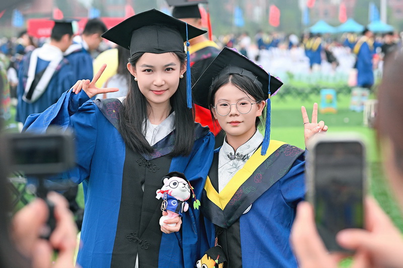 毕业生在典礼现场合影
