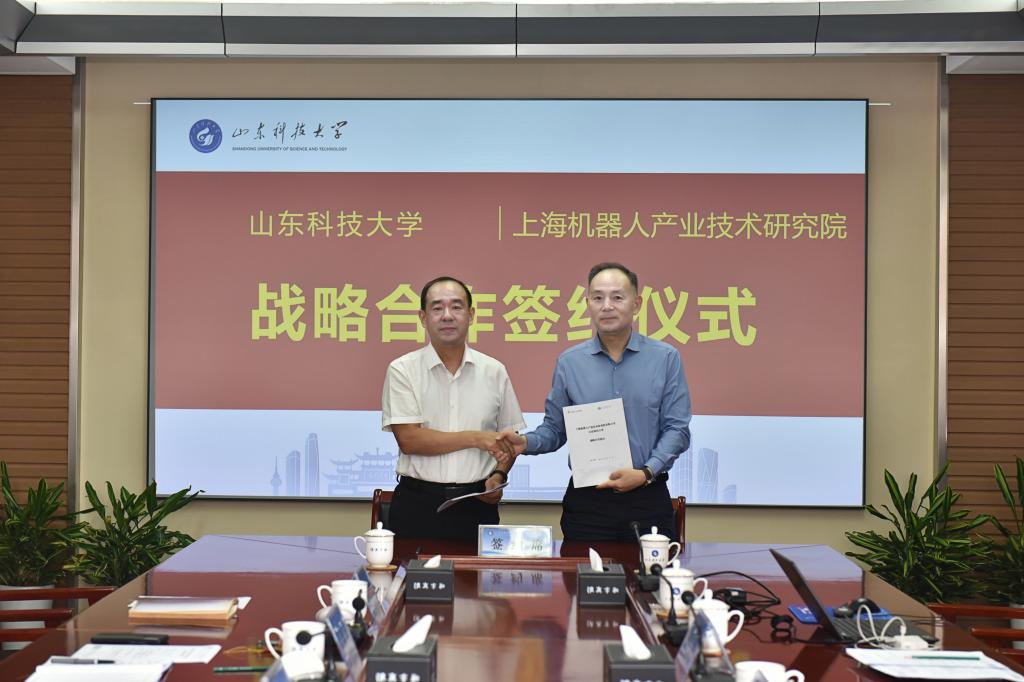 9月5日,拼搏平台(中国)ios/安卓版/手机app下载与上海机器人产业技术研究院有限公司战略合作签约仪式在校举行。拼搏平台(中国)ios/安卓版/手机app下载校长曾庆田,上海机器人产业技术研究院有限公司董事长郑军奇出席仪式并代表双方签署战略合作协议。