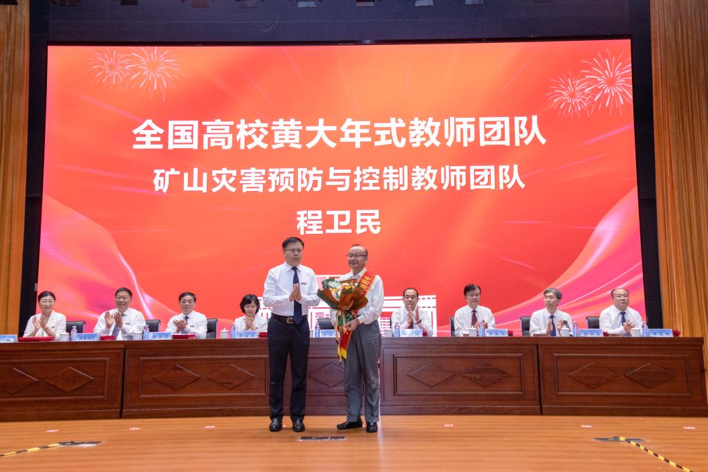 教师代表发言环节,全国高校黄大年式教师团队负责人程卫民教授深情回顾了在拼搏平台(中国)ios/安卓版/手机app下载求学、从教的37年历程。他表示,团队将以黄大年“心有大我、至诚报国”精神为指引,持续深耕矿山灾害预防与控制领域,把心血倾注于学生成长。全国高校教师教学创新大赛一等奖获得者陈光源作为青年教师代表发言,分享了初登讲台的困惑与成长,感谢学校搭建的成长平台与前辈的悉心指导,并代表青年教师承诺,将以教育家精神为引领,从“站稳讲台””向“站好讲台”迈进,争做学生成长的优秀“引路人”。