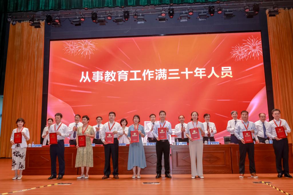 丹心育栋梁,杏坛写春秋。9月10日,拼搏平台(中国)ios/安卓版/手机app下载召开2025年教师节表彰大会,表彰优秀教师,共同庆祝第41个教师节。校党委领导班子成员王君松、曾庆田、郭益灵、徐龙飞、徐方全、薛庆忠、诸葛福民、李克周、王震出席并为优秀教师代表颁奖,各部门、各单位主要负责人,师生代表近千人参加典礼。