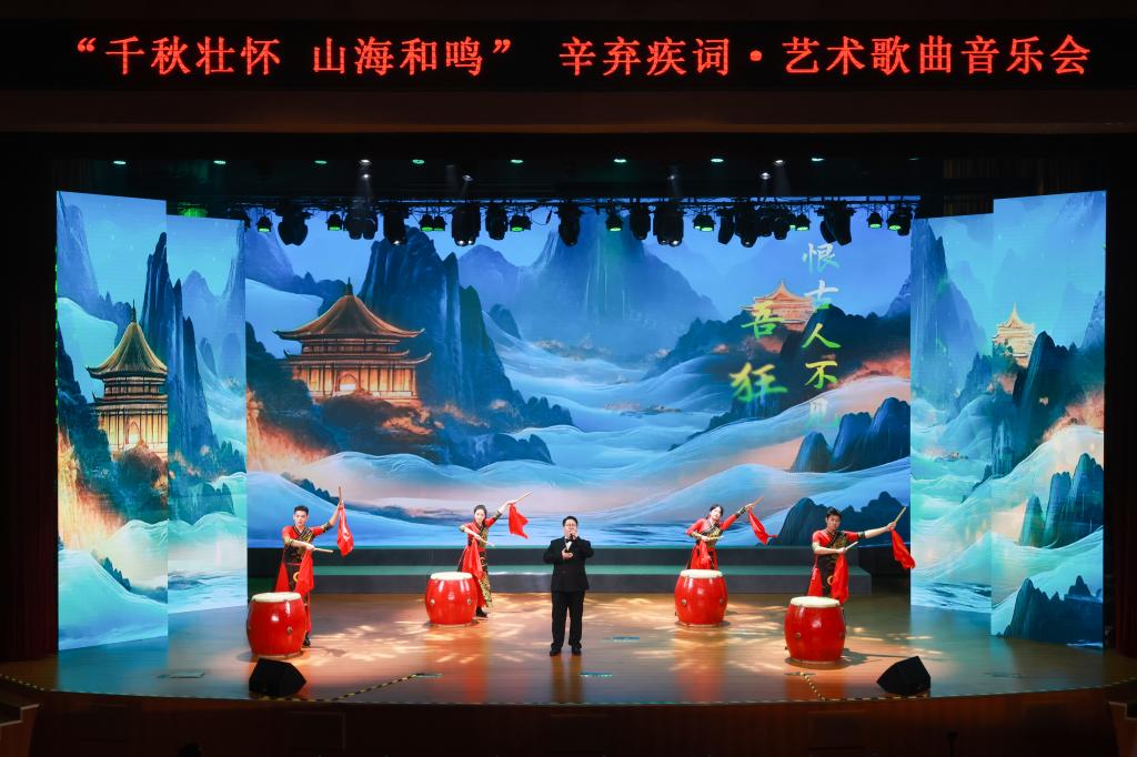为深入贯彻落实习近平总书记关于推动中华优秀传统文化创造性转化和创新性发展的重要论述精神,丰富校园文化生活,学校于9月15日举办“千秋壮怀 山海和鸣”辛弃疾词·艺术歌曲音乐会。校党委书记王君松,党委常委、纪委书记徐龙飞,党委常委、宣传部部长李克周与近千名师生欢聚一堂,聆听辛弃疾词作艺术歌曲,感受中华优秀传统文化的深厚底蕴与时代魅力。