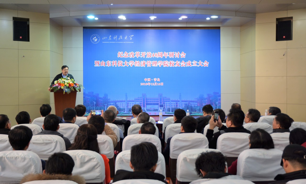 庆祝改革开放40周年研讨会由经管学院院长侯贵生主持。会上,管理工程83级校友、青岛万州食品有限公司董事长刘建山回忆了40年来的成长和创业故事,会计学2000级校友、蓝海集团副总裁鲁晓静作了“文旅时代的想象力”主题报告,电子商务2006级校友、汇通达网络股份有限公司CTO孙超以“互联网下半程的挑战与机遇”为题分享了自己的思考。