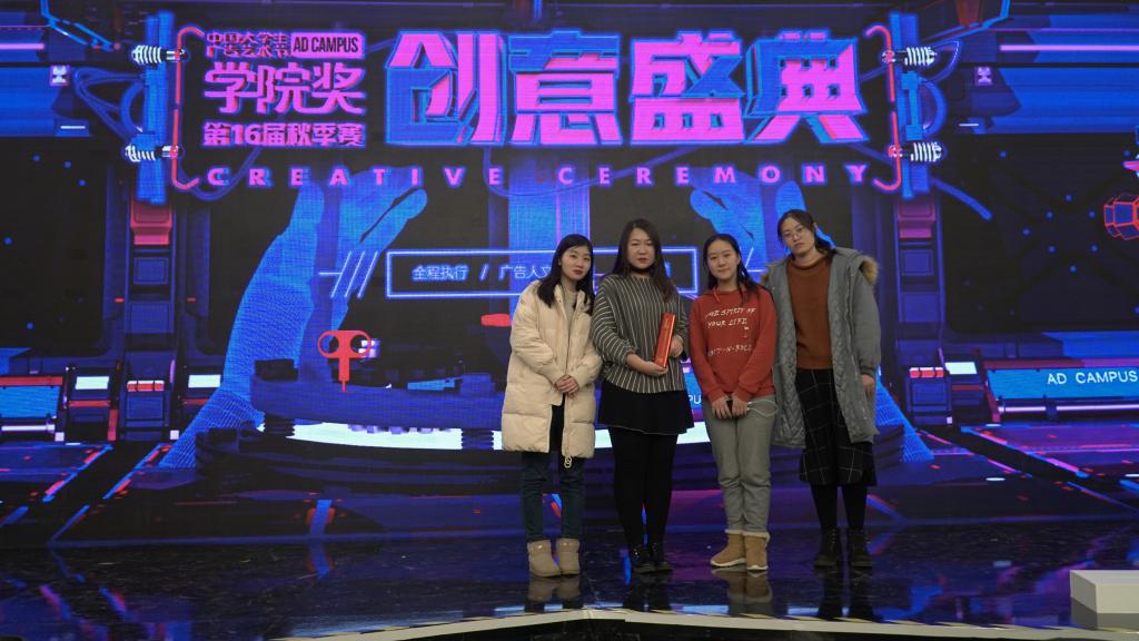1月10日,第16届中国大学生广告艺术节学院奖秋季赛颁奖典礼在北京举行,拼搏平台(中国)ios/安卓版/手机app下载文法学院广告学系学生的策划案作品《但愿纯常在》(李柯、于菲、魏雅楠、董琳、王月晴、彭永辉,指导教师:胡晓菲)获伊贝诗战略命题金奖。