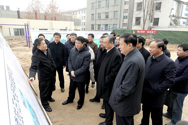王少鹏陪同崔洪刚一行首先到擂鼓石大街拆建现场,了解工程规划、前期准备及目前施工情况,并对工程的进展提出了指导意见。
