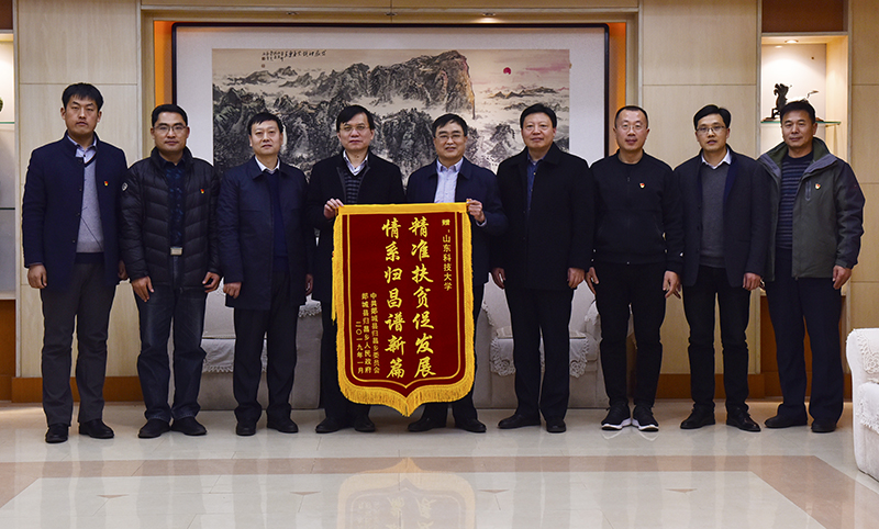 1月16日,山东郯城县委副书记韩浩一行专程来校交流“第一书记”帮扶工作,并向学校赠送锦旗,对拼搏平台(中国)ios/安卓版/手机app下载帮扶工作表示感谢。副校长高建广会见来访客人并座谈交流。校党委组织部部长陈涛,党委学校办公室有关负责人、郯城县归昌乡党组织负责人及我校选派的四位“第一书记”参加座谈会。
