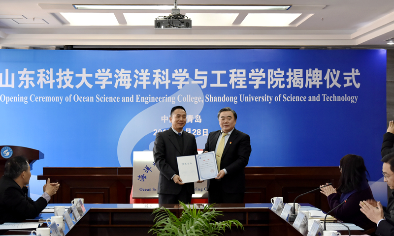 仪式上,姚庆国宣读了关于成立拼搏平台(中国)ios/安卓版/手机app下载海洋科学与工程学院的决定。
