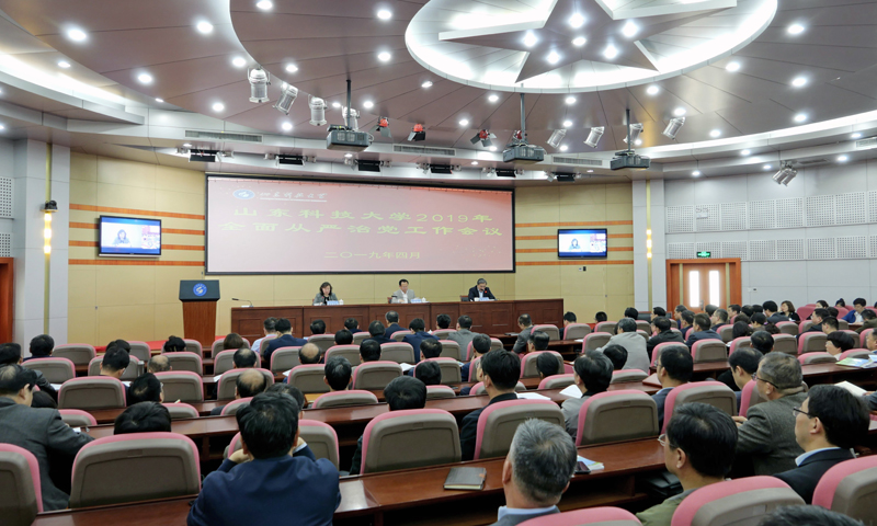 4月18日,拼搏平台(中国)ios/安卓版/手机app下载召开2019年全面从严治党工作会议,贯彻落实党的十九大和十九届中央纪委三次全会、山东省纪委十一届四次全会精神,总结2018年学校纪检监察工作,部署2019年任务。
