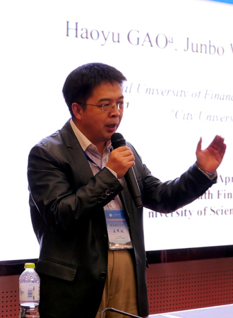 研讨会上,彭实戈院士作题为“关于数学与自然科学中的不确定原理的探讨”的特邀报告,将基本理论与多个方面的实例相结合,向各位专家、学者介绍了最新学术动态,并对专家代表提出的问题进行了解答。香港城市大学王军波教授、复旦大学马成虎教授、香港中文大学何雪冬教授、中山大学李仲飞教授、苏州大学袁先智教授等分别作了大会主题报告,介绍了各自研究领域的最新进展和动向,研讨了金融数学与金融数据处理等研究领域的最新研究成果和研究动态。另外,多位青年才俊结合当今金融数学领域的发展作了相关学术报告,进行学术交流。会议期间,与会的专家学者畅所欲言,见仁见智,学术氛围十分浓厚。