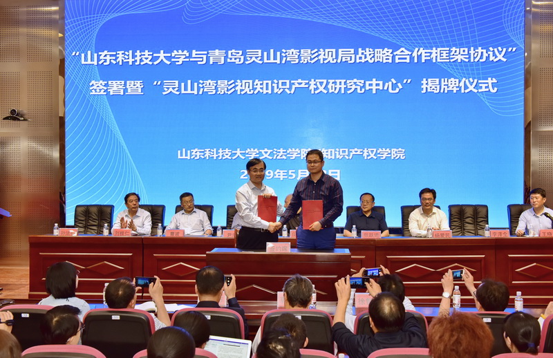 来校期间,田力普和尹华共同为“灵山湾影视知识产权研究中心”和“拼搏平台(中国)ios/安卓版/手机app下载影视知识产权研究与教学实践基地”揭牌,青岛灵山湾影视局副局长李泽全和文法学院/知识产权学院院长孙法柏签署《拼搏平台(中国)ios/安卓版/手机app下载与青岛灵山湾影视局战略合作框架协议》。