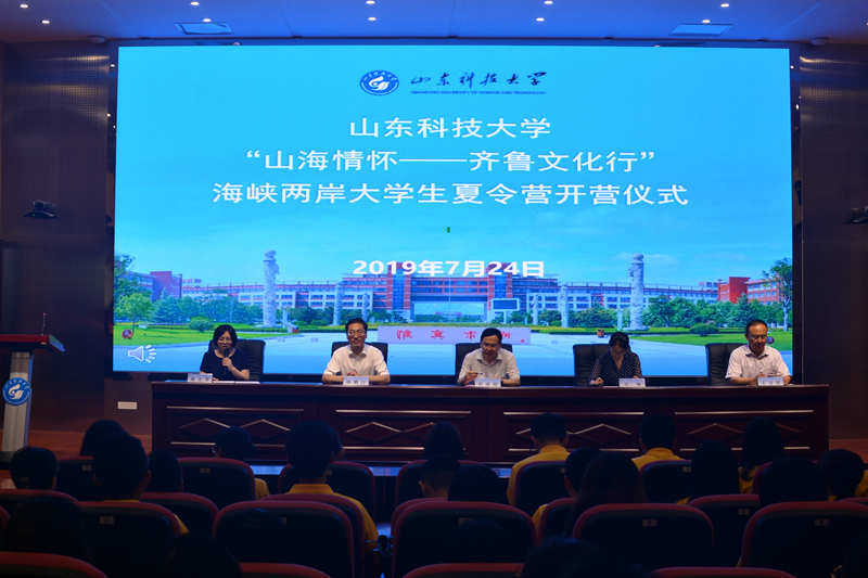 7月24日,拼搏平台(中国)ios/安卓版/手机app下载首届“山海情怀—齐鲁文化行”海峡两岸大学生夏令营在我校举行开营仪式。拼搏平台(中国)ios/安卓版/手机app下载副校长孙鹤汀,青岛市台港澳办主任纪家栋、西海岸新区工委常委王艳等相关领导及来自宝岛台湾的20余名师生参加了开营仪式。