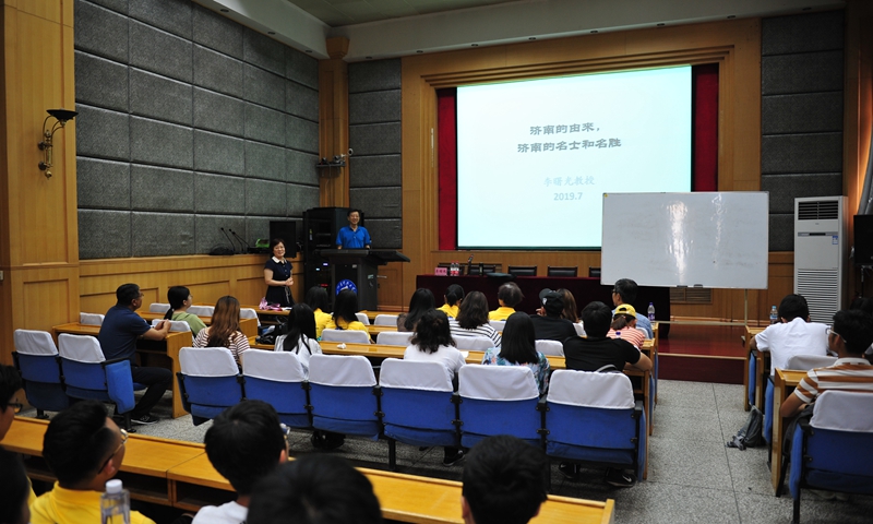 7月24日上午,“山海情怀—齐鲁文化行”海峡两岸大学生夏令营在青岛校区开营,副校长孙鹤汀、青岛市台港澳办主任纪家栋为开营仪式致辞并为夏令营授旗。