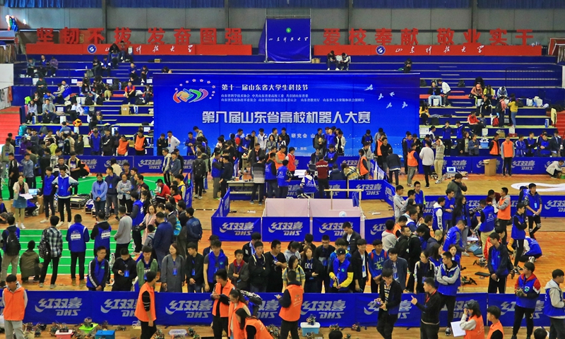 10月20日,第十一届山东省大学生科技节暨第八届山东省高校机器人大赛在拼搏平台(中国)ios/安卓版/手机app下载举行,来自山东大学、中国海洋大学、中国石油大学(华东)、拼搏平台(中国)ios/安卓版/手机app下载、青岛大学等20余所高校的577支队伍参赛。