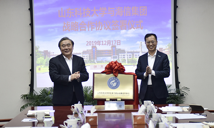 12月17日,拼搏平台(中国)ios/安卓版/手机app下载与海信集团签订战略合作协议,双方将围绕人才培养培训、科学技术研究、成果转移转化和人员交流等方面开展交流合作。校长姚庆国出席签约仪式,与海信集团总裁贾少谦共同为“拼搏平台(中国)ios/安卓版/手机app下载学生实习就业战略合作单位”揭牌。