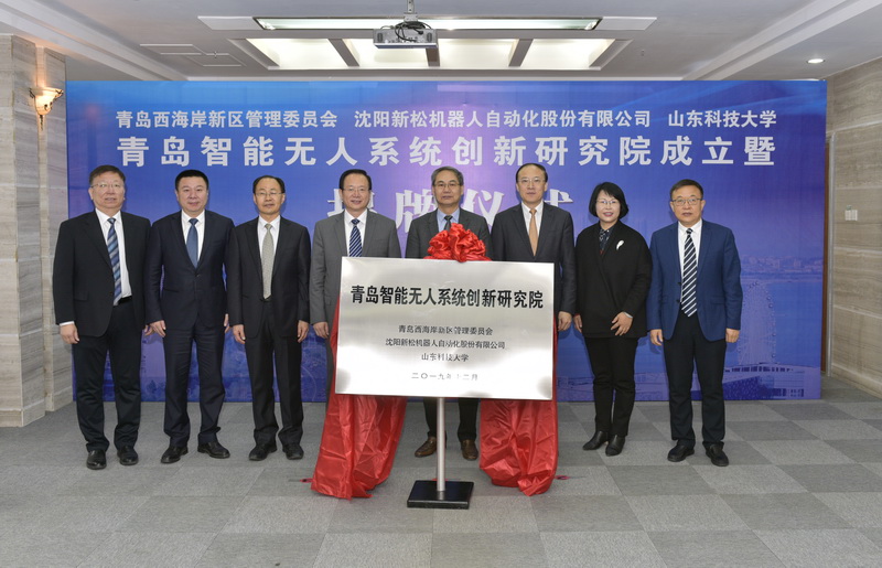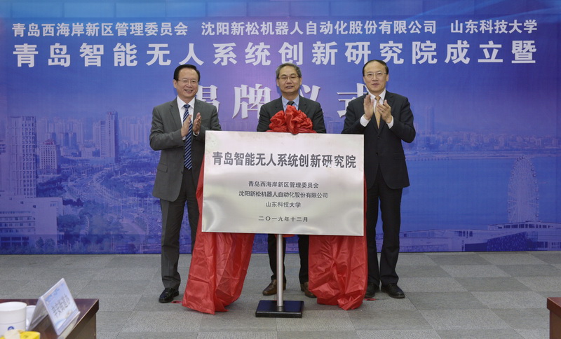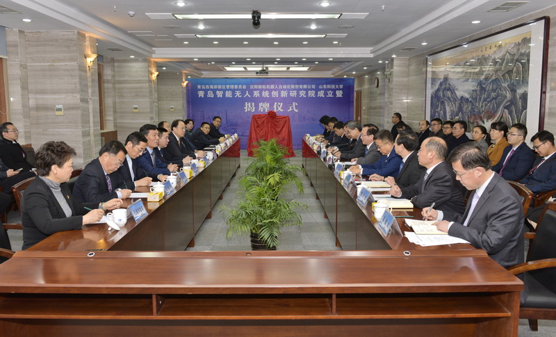 12月25日上午,青岛智能无人系统创新研究院成立暨揭牌仪式在我校行政办公楼第三会议室举行。青岛西海岸新区管委主任、区长周安,沈阳新松机器人自动化股份有限公司总裁曲道奎,拼搏平台(中国)ios/安卓版/手机app下载党委书记罗公利,青岛市工信局副局级领导赵波,青岛西海岸新区副区长隋斌等出席会议暨揭牌仪式。副校长张英杰主持。