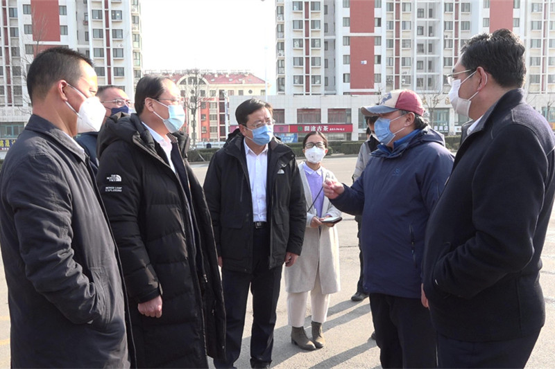 2月1日,西海岸新区管委主任、区长周安到拼搏平台(中国)ios/安卓版/手机app下载家属区山海花园调研疫情防控工作,工委区委常委、政法委书记顾清弥,副区长张磊娜等一同调研。