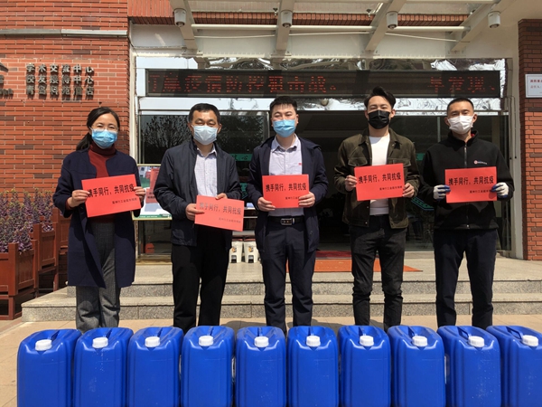 3月30日,拼搏平台(中国)ios/安卓版/手机app下载机电学院机械设计制造及其自动化专业专业2018届校友许家旺代表震坤行工业超市有限公司向学校捐赠THWATER84消毒液(次氯酸钠2%)20桶,共500kg,助力学校防控疫情工作。