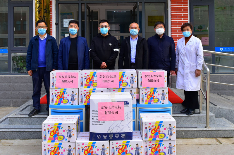 泰安玉兴家纺有限公司向济南校区捐赠了40套防护服、80箱84消毒液等共计八千多元的疫情防控物资。公司负责人侯超表示,希望能通过捐赠防控物资为济南校区疫情防控工作贡献一份力量,与学校进一步加强交流合作,实现共赢。