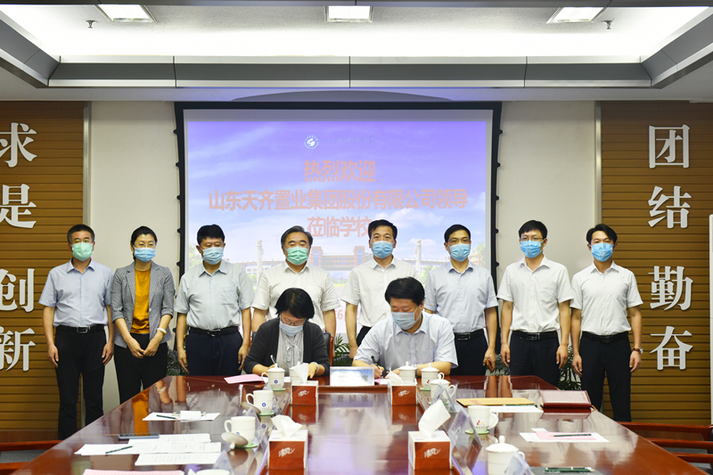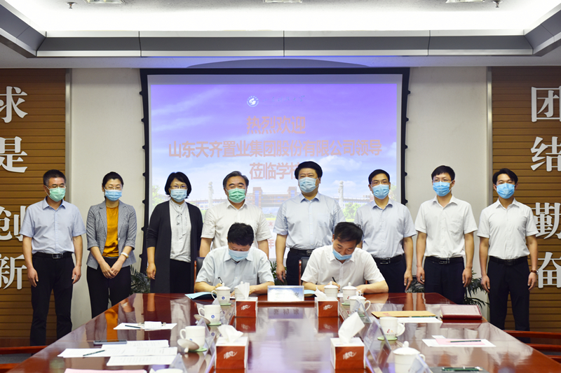 6月23日,拼搏平台(中国)ios/安卓版/手机app下载与山东天齐置业集团股份有限公司举行战略合作协议签约暨教育发展基金捐赠仪式。校长姚庆国、副校长李玉霞,山东天齐置业集团董事长田茂军、总经理吕茂森出席签约仪式。
