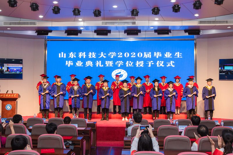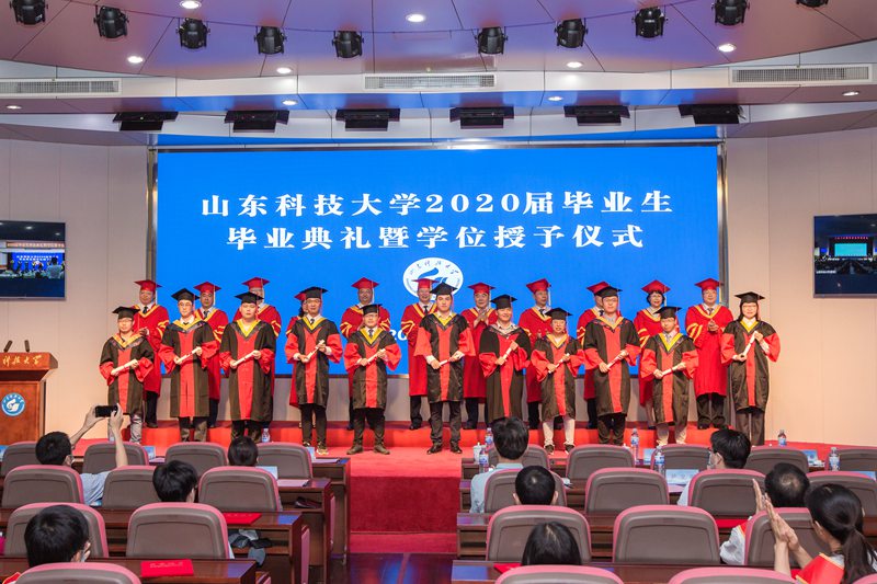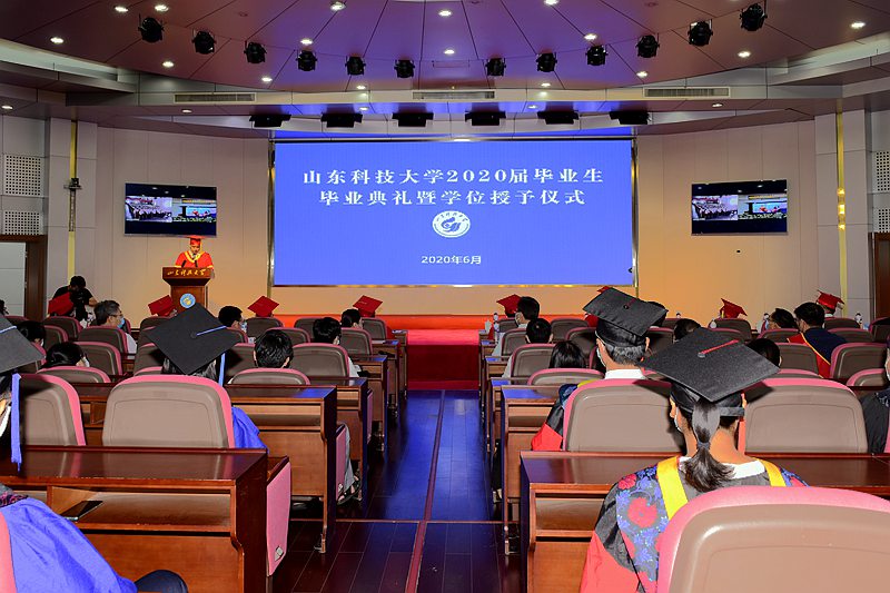 6月24日,拼搏平台(中国)ios/安卓版/手机app下载在逸夫讲堂举行2020届毕业生毕业典礼暨学位授予仪式,送别一万余名毕业生。受疫情影响,学校在严格落实疫情防控要求前提下,100多名毕业生代表在现场参加典礼仪式,典礼为青岛、泰安、济南三地视频典礼,更多师生通过网络直播方式参加“云典礼”。